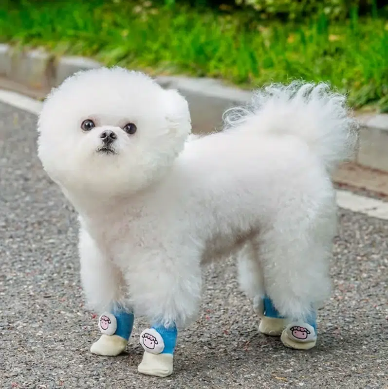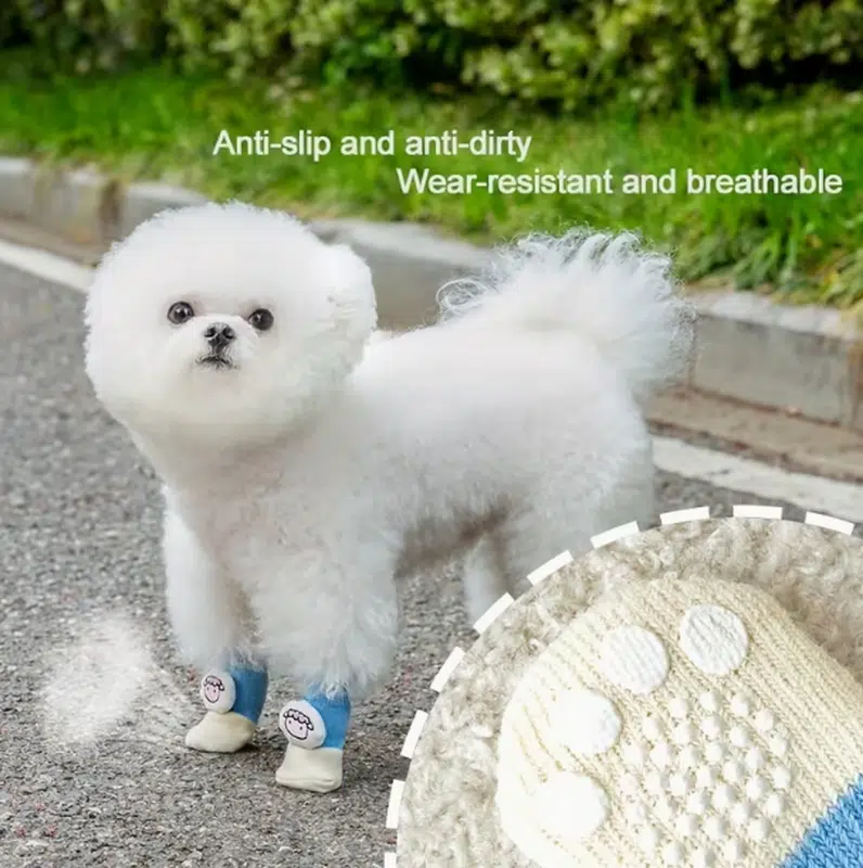 A high-friction latex grip on the sole improves traction on tile, laminate, and wooden floors. Inside, smooth stitching helps reduce irritation on sensitive paws, while the breathable knit balances warmth and comfort for fall and winter seasons.