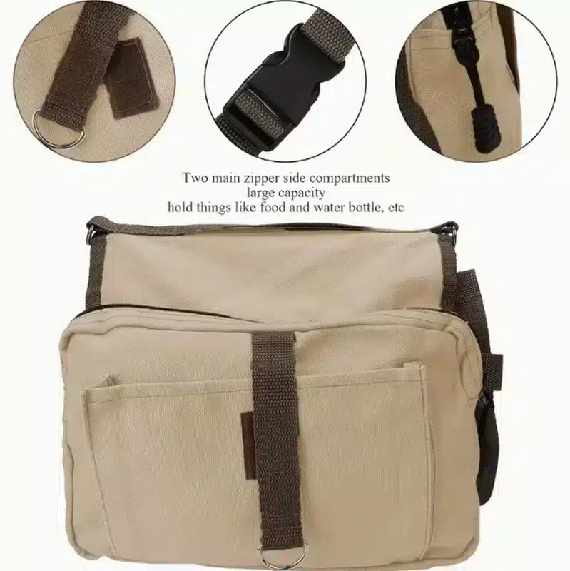 Lightweight yet tough, this saddle bag is engineered from heavy-duty polyester and nylon with reinforced stitching and smooth zippers. Adjustable chest and belly straps plus quick-release buckles guarantee a snug, chafe-free fit on virtually any breed. Two oversized side pockets swallow full-size water bottles and still have room for snacks and gear.