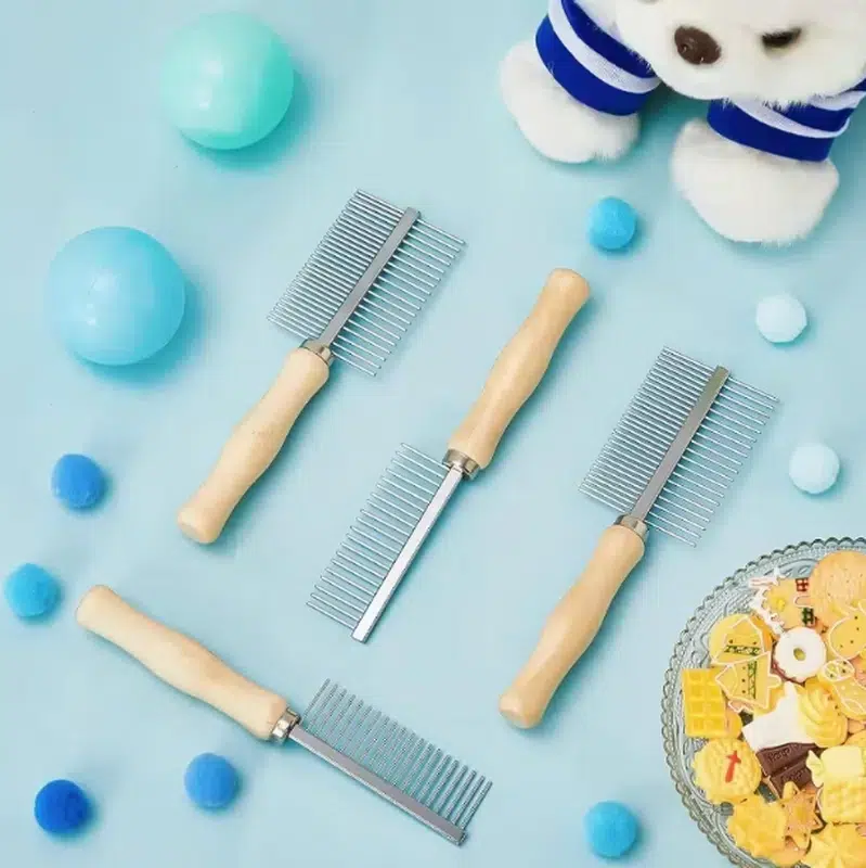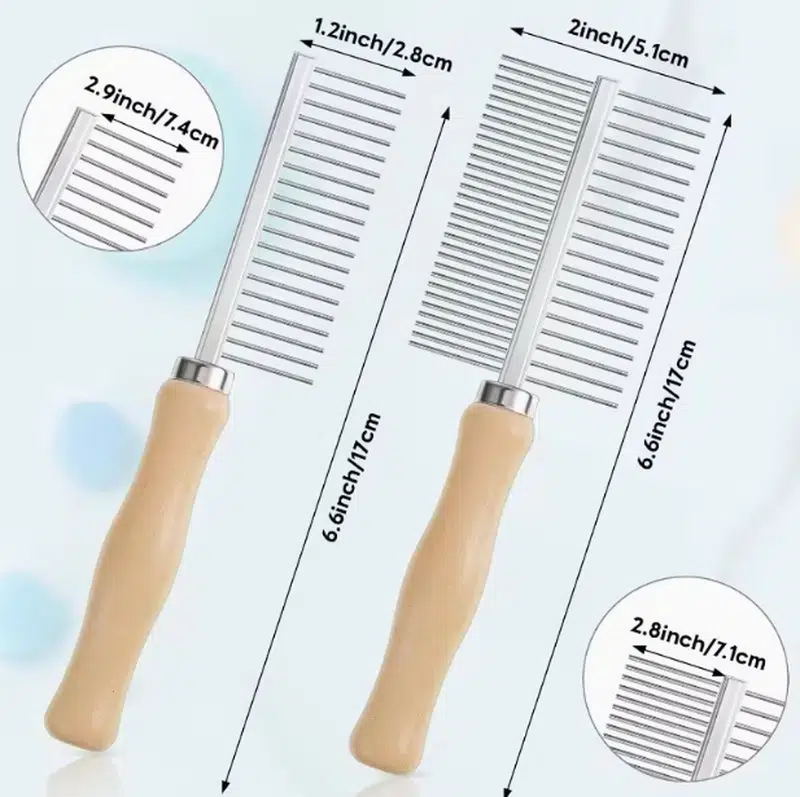 This double-sided pet grooming comb is engineered with two different tooth densities to handle multiple grooming needs. The fine-tooth side effectively captures fleas, flea eggs, and fine debris close to the skin, while the wider-tooth side easily removes loose fur, dander, and tangled hair from both long-haired and short-haired pets. It is widely used by professional groomers, veterinary clinics, pet shops, and home users as a reliable dog flea comb, stainless steel pet grooming comb, and wooden handle grooming brush in the US market.