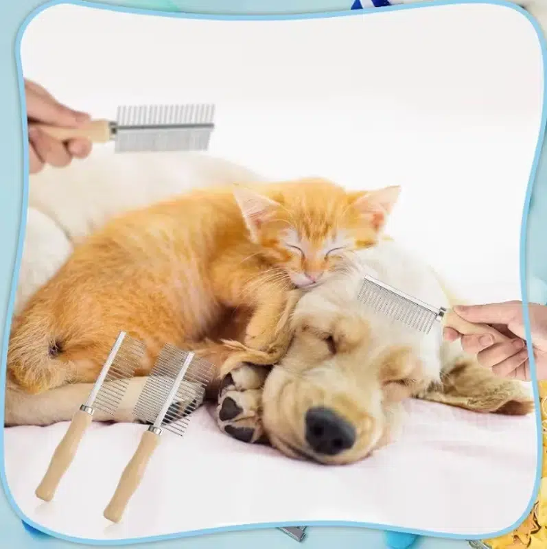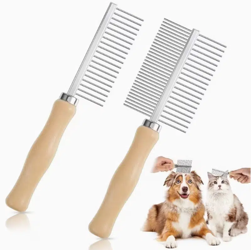 - Double-sided stainless steel teeth for flea removal and de-shedding