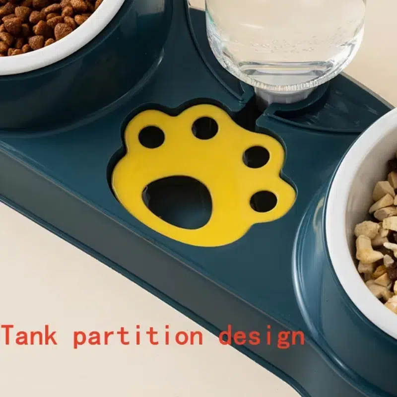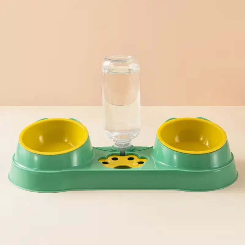 Keep food dry & water fresh with this anti-tip double bowl feeder. Auto-refill dispenser + paw-shaped stable base. Perfect for kennels, breeders & retailers. MOQ 500pcs, full OEM/custom colors & logo supported from our factory.