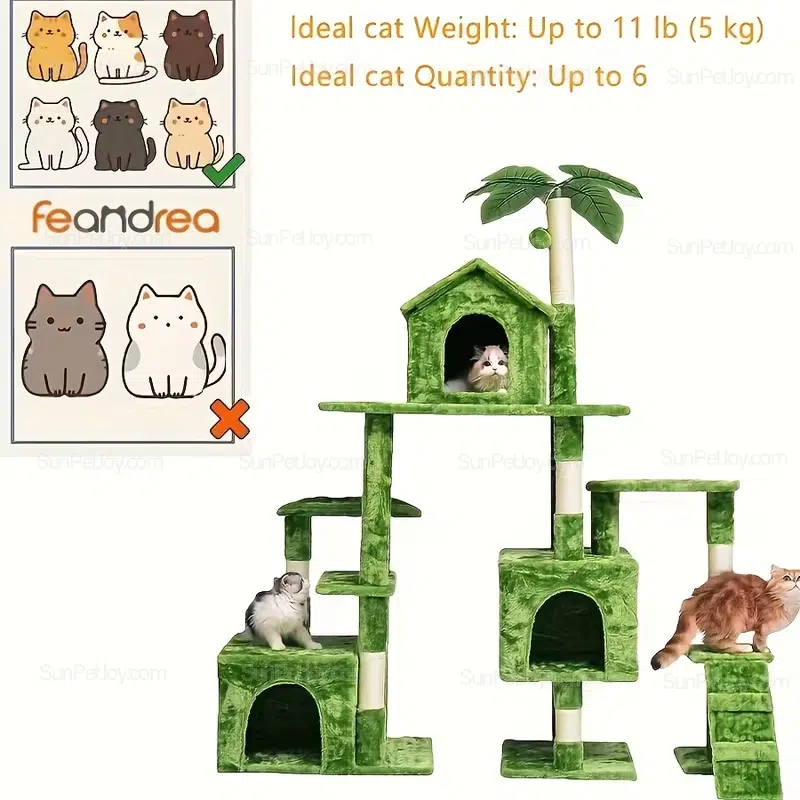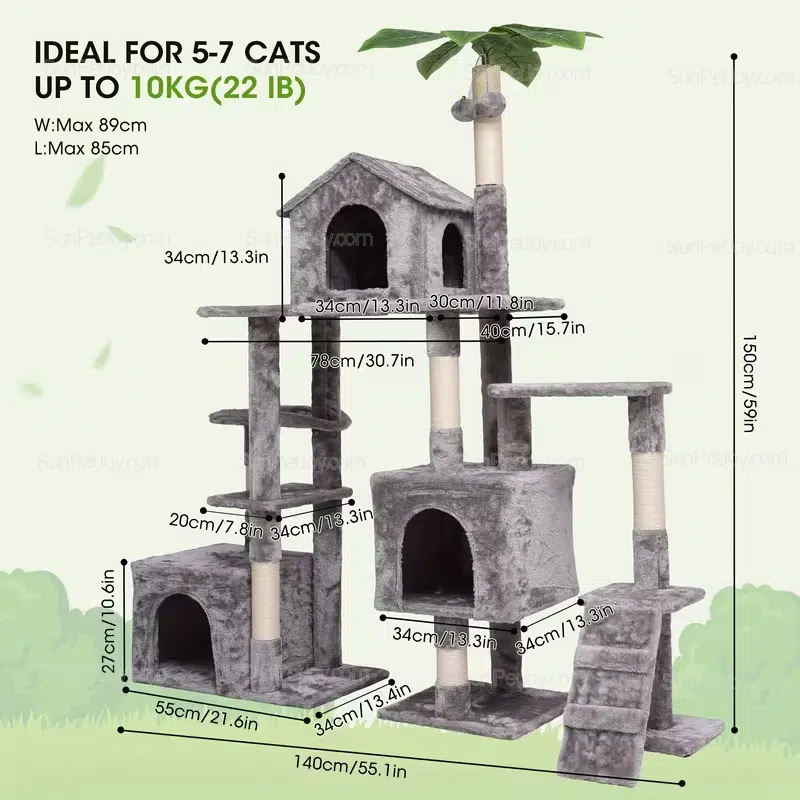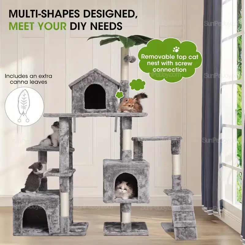 Elevate your pet product line with the SUNPETJOY 59″ Multi-Level Cat Tree Tower, a robust climbing haven designed for active felines. Crafted for durability and fun, this tower features sisal-wrapped scratching posts, cozy hideaways, and elevated perches that mimic natural exploration. Ideal for multi-cat environments, it supports up to 7 cats weighing 10kg each. As a B2B supplier, we offer full OEM customization—tailor sizes, colors (like classic gray or vibrant green), and configurations to fit your brand’s needs.