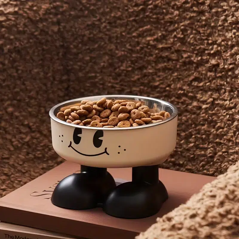 Wholesale Elevated Cartoon Pet Bowl with Smiling Face for Spine-Safe Feeding
