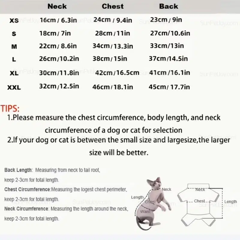 | Size | Neck (cm/in) | Chest (cm/in) | Back (cm/in) |