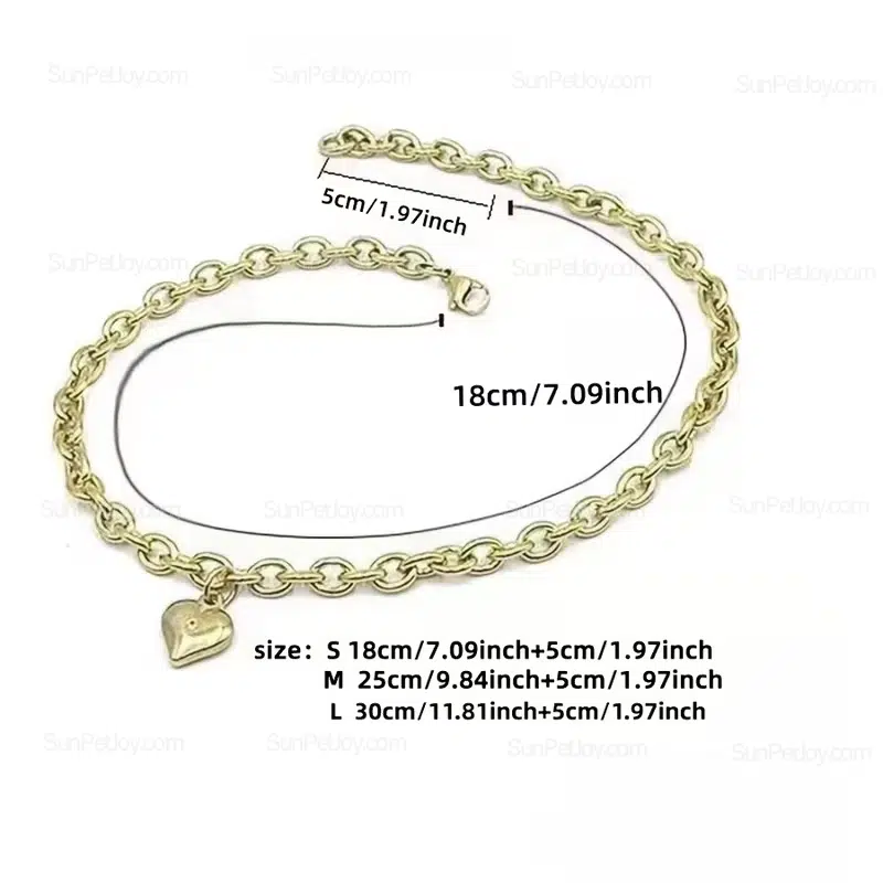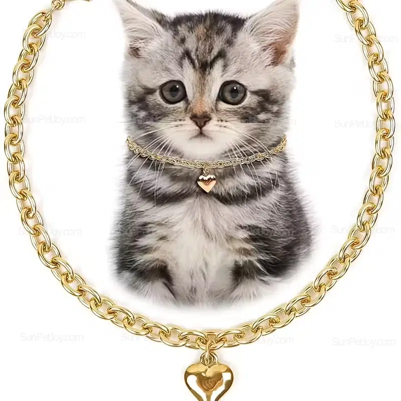 Elevate your pet accessory line with SUNPETJOY’s premium adjustable golden heart-shaped alloy pet collar necklace, perfect for cats and small dogs. Crafted from durable alloy, this versatile chain offers a luxurious touch with its heart pendant, blending style and comfort for everyday wear or boutique displays.