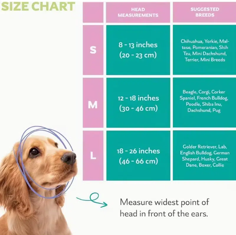 | Size | Head Measurements | Suggested Breeds |