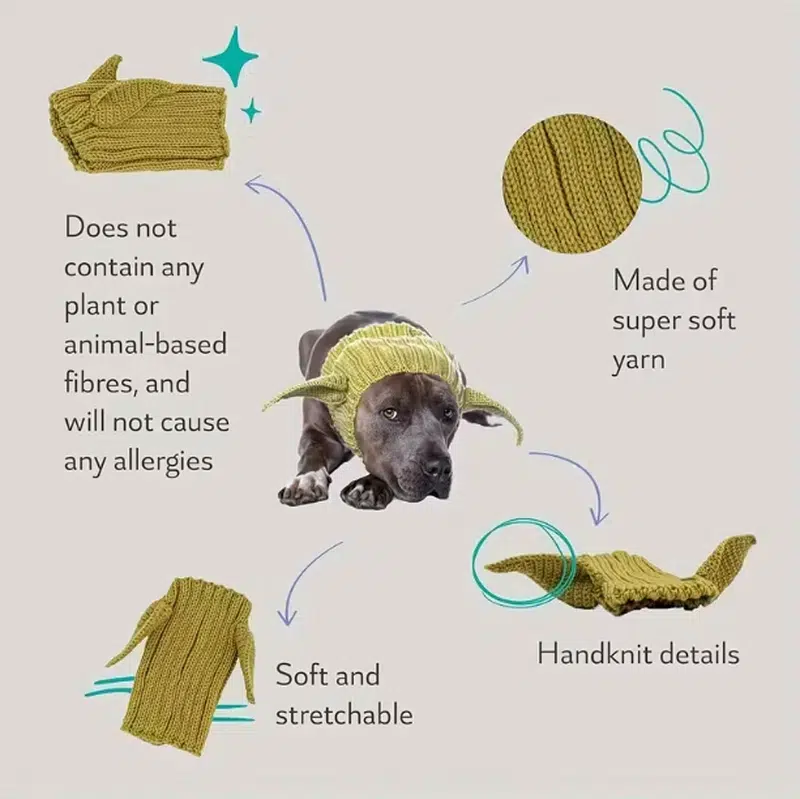 Discover the SUN PET Green Elf Knitted Dog Hat – a whimsical yet practical accessory that instantly turns any pup into a festive Jedi master. Handcrafted from ultra-soft, 100% hypoallergenic synthetic yarn with no plant or animal fibers, this windproof hat delivers cozy warmth without triggering allergies, making it perfect for Halloween parades or Christmas markets.