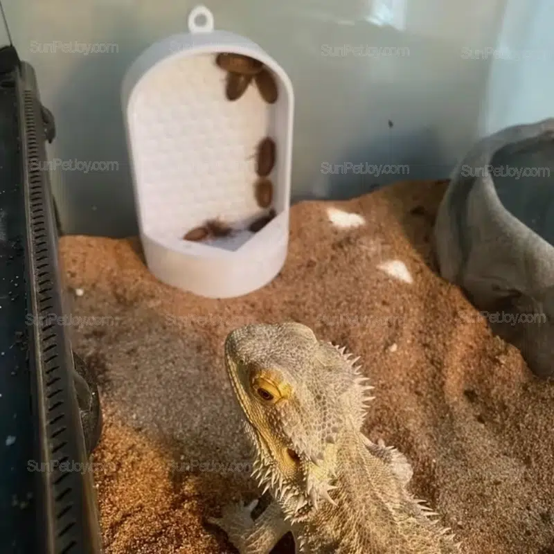 This hanging live food feeder dish is developed specifically for lizards and insect-feeding reptiles, offering a practical solution for controlling live insects such as mealworms, dubia roaches, and larvae inside terrariums. The vertical inner wall and textured surface help prevent insects from escaping while encouraging natural hunting behavior.