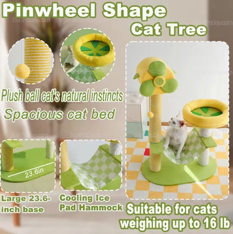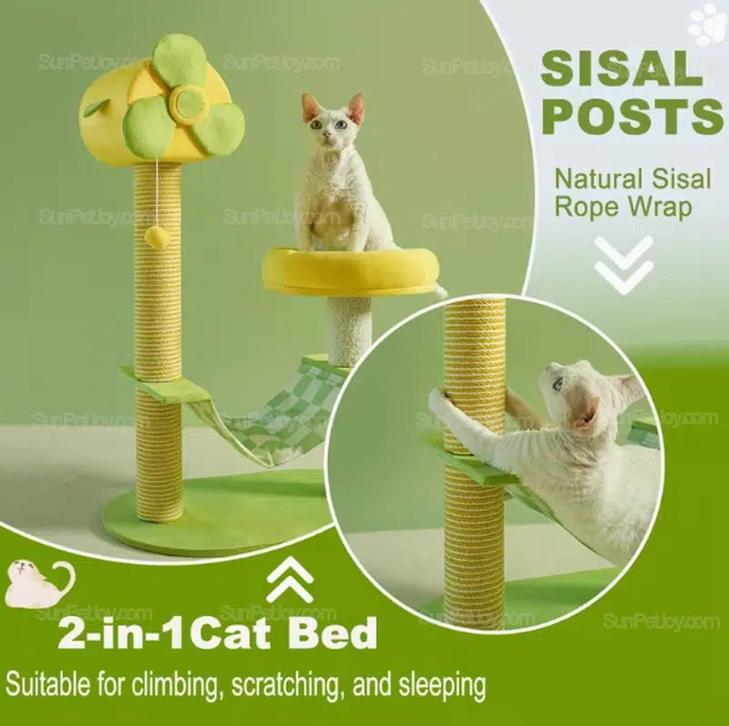 This cat tree integrates scratching, climbing, lounging, and resting into one compact footprint. The heavy-duty base improves stability in multi-cat households, while the elevated bed and hammock layout encourages natural feline movement without excessive floor space. It is suitable for pet retailers, distributors, and brands building scalable product lines.