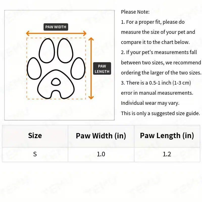 | Size | Paw Width (in) | Paw Length (in) |