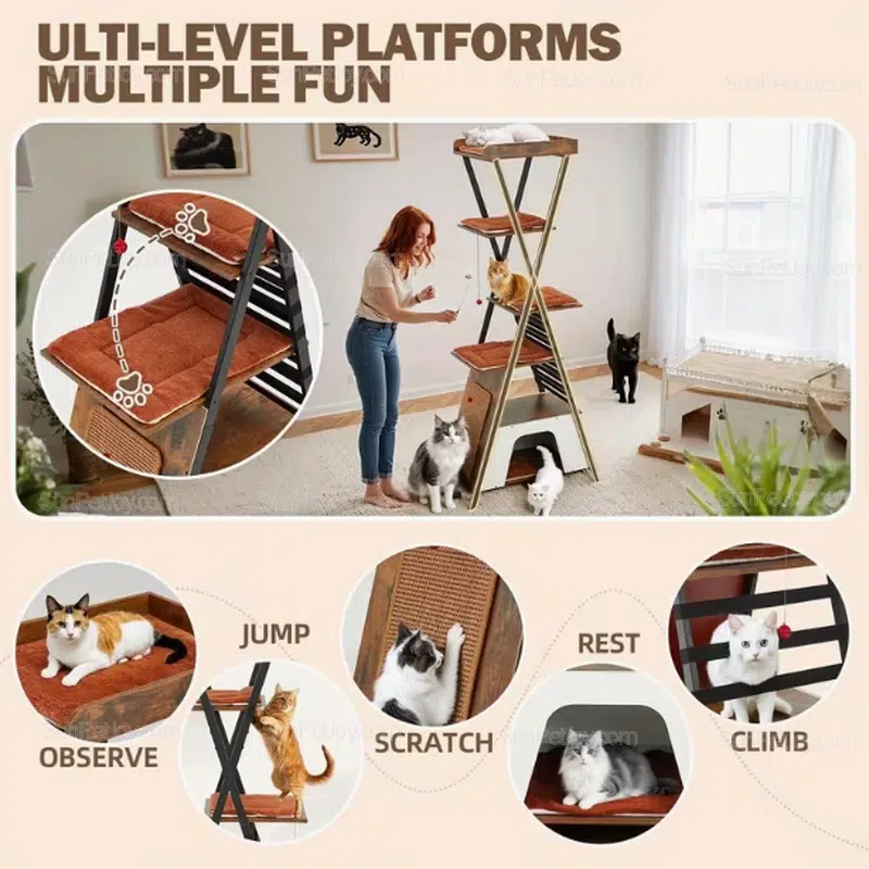 - Multi-Level Design: Perfect for multiple cats to play, jump, and rest at different heights.