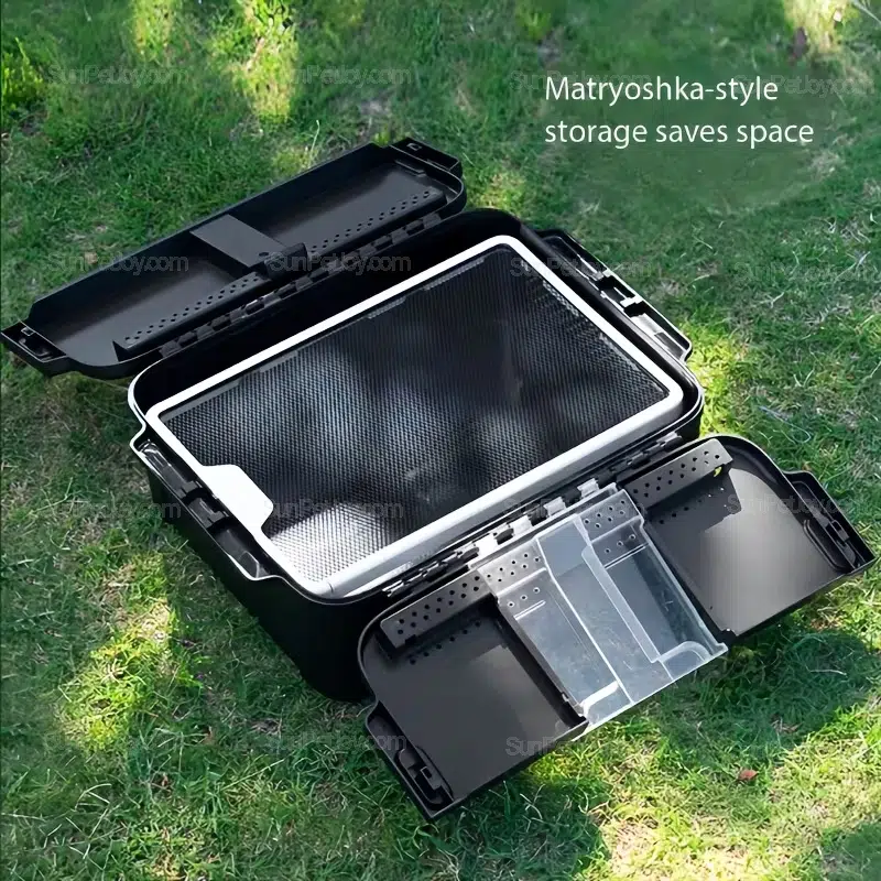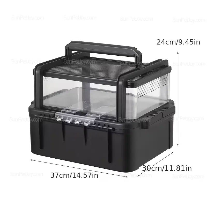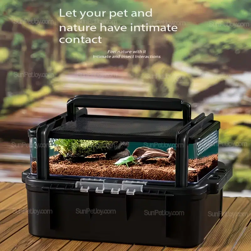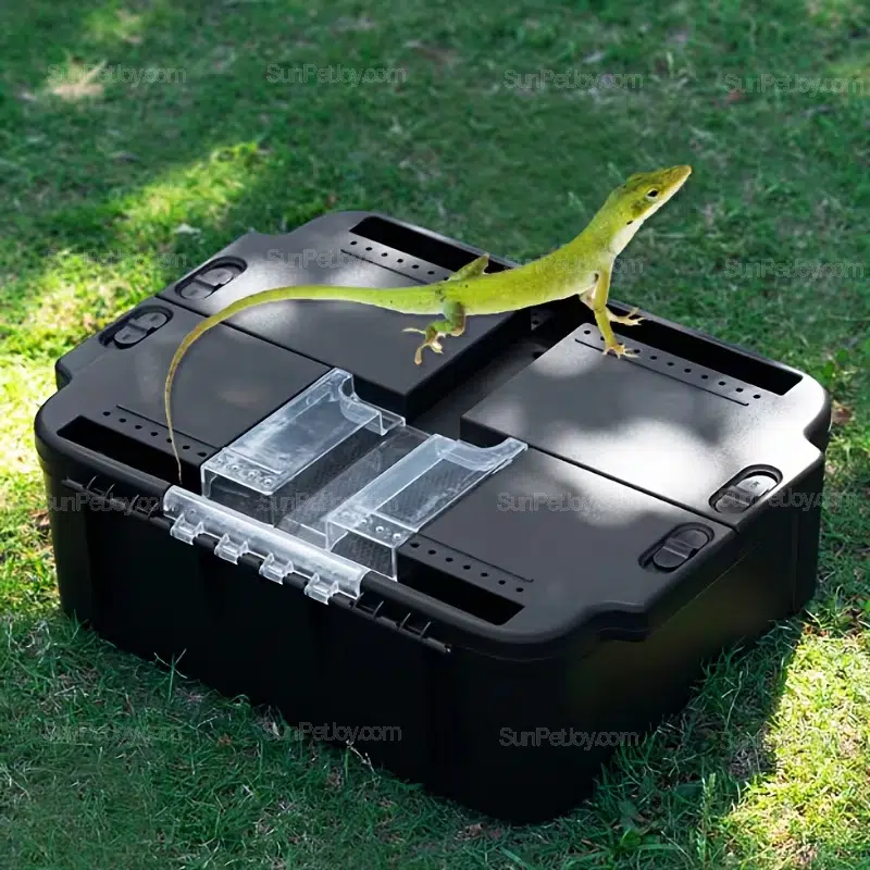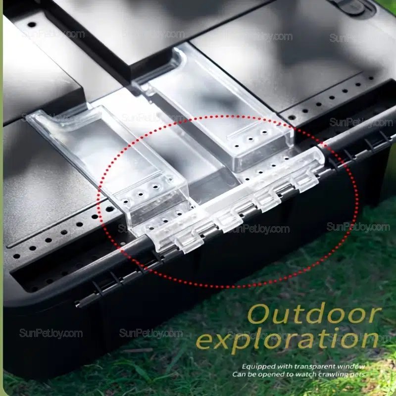 The double-layer design separates storage and living space, improving handling efficiency during transport, outdoor exploration, or short-term enclosure use. Transparent panels allow clear observation of lizards while maintaining airflow through multi-directional ventilation holes.