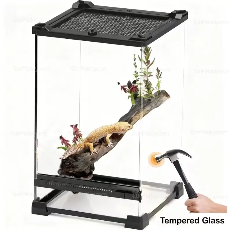 This tall glass terrarium is engineered for lizards and arboreal reptiles that require vertical space, airflow stability, and clear visibility. Built with tempered glass panels and a ventilated screen top, it is widely used by breeders, specialty reptile stores, and brands sourcing OEM lizards terrarium solutions for private-label programs.