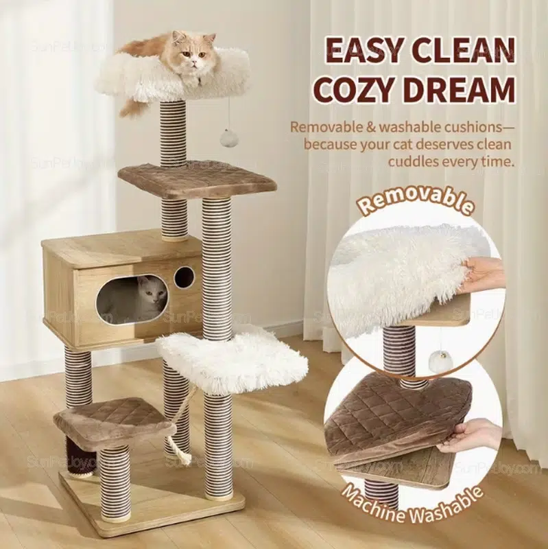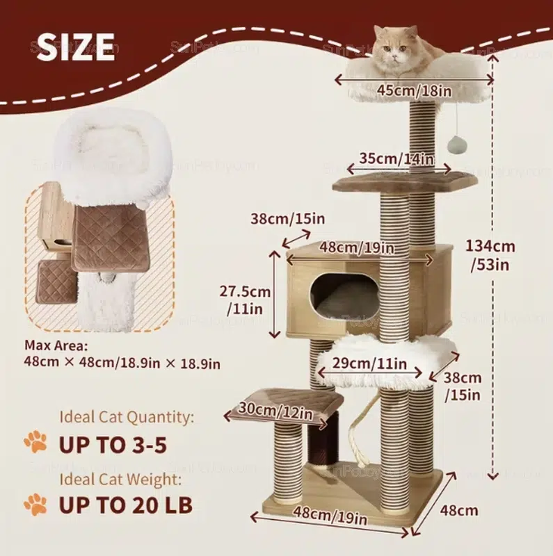 Crafted from durable wood and wrapped in 2cm plush fluff, it’s ideal for wholesale cat tree suppliers targeting big cat owners. Our B2B services support full customization—adjust sizes, colors, and features to match your brand needs through OEM production.