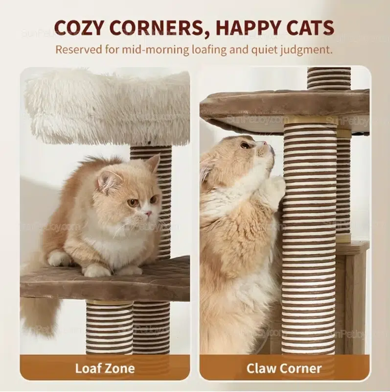 - Integrated scratching areas with paper rope posts