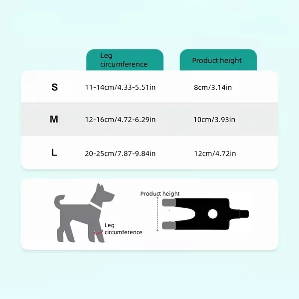 | Size | Leg Circumference | Product Height | Recommended Breeds |