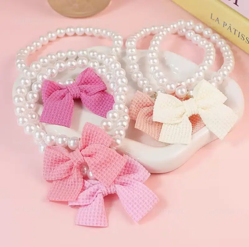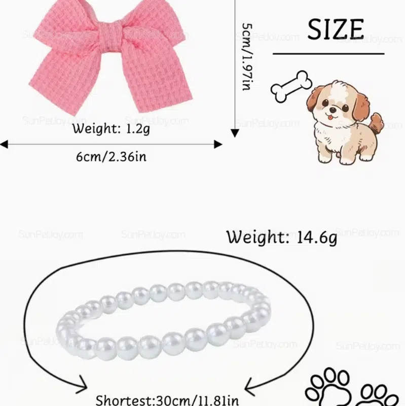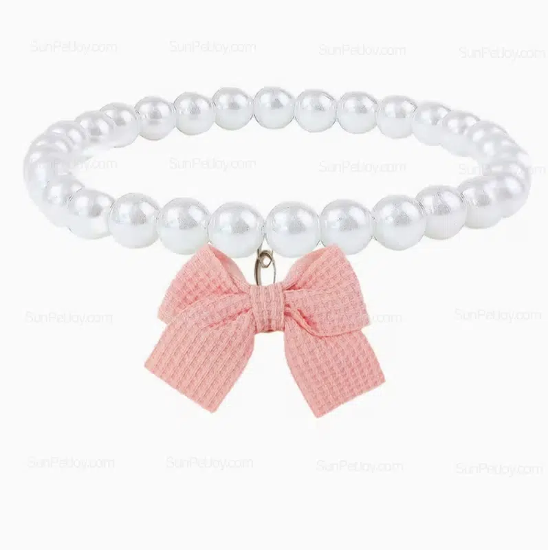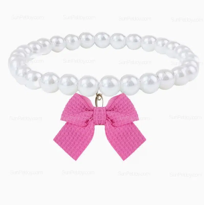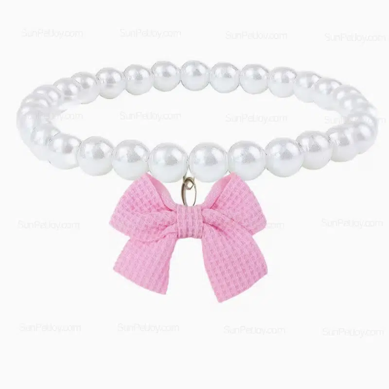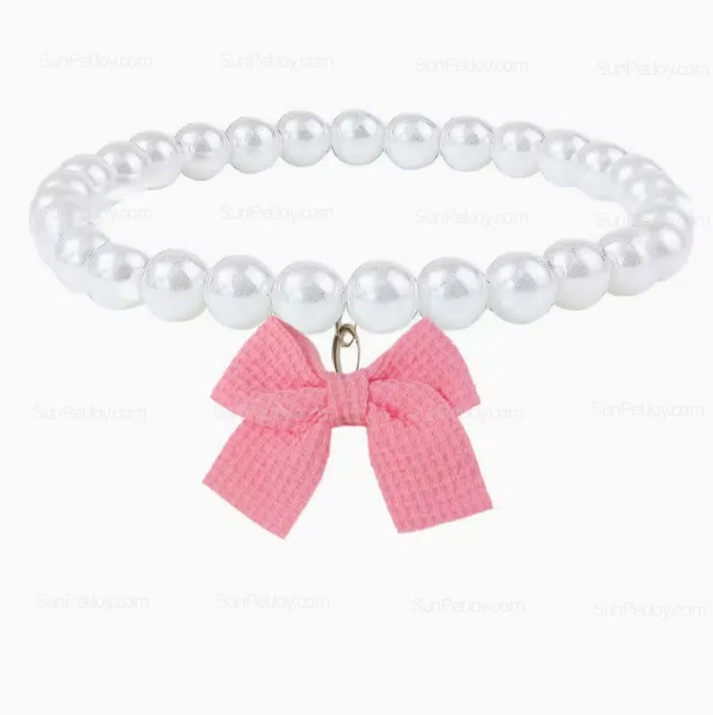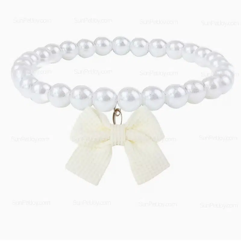 - pearl bow pet necklace