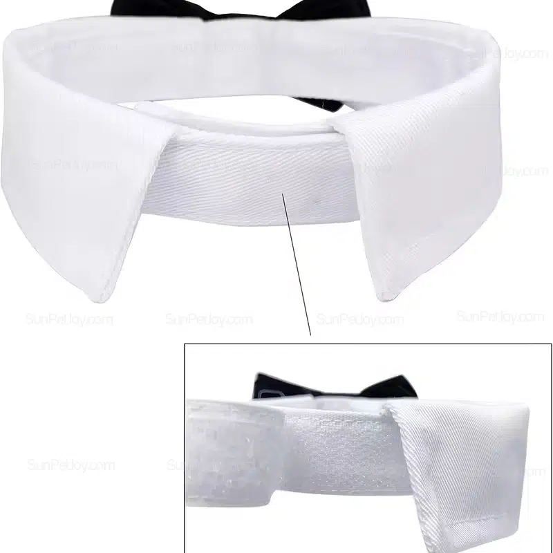 This adjustable pet bow tie collar is designed for brands and wholesalers seeking a refined, shirt-style pet accessory with strong retail appeal. Inspired by classic formal wear, the crisp white collar paired with a black bow tie or necktie creates a clean, structured look that stands out in premium pet accessory lines.