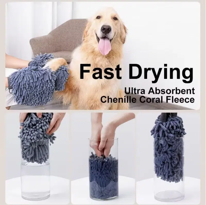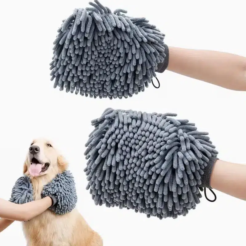 Wholesale Quick-Dry Chenille Pet Drying Gloves with High-Absorbent Mitt Design