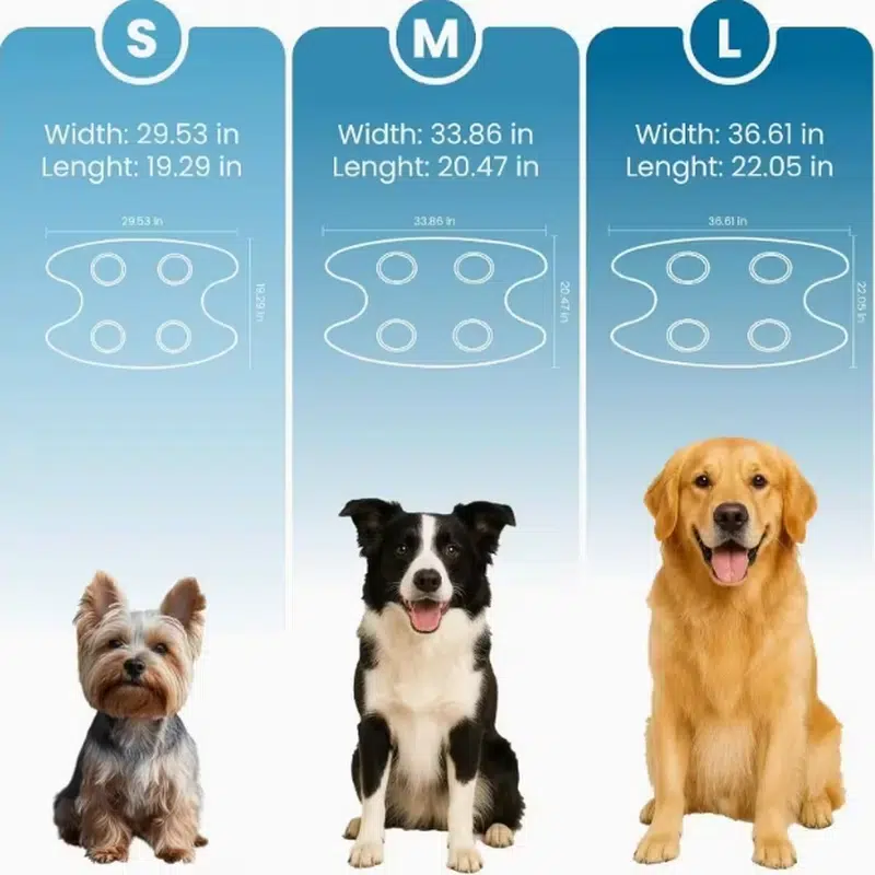| L | 36.61 in | 22.05 in | Golden Retriever, large breeds |