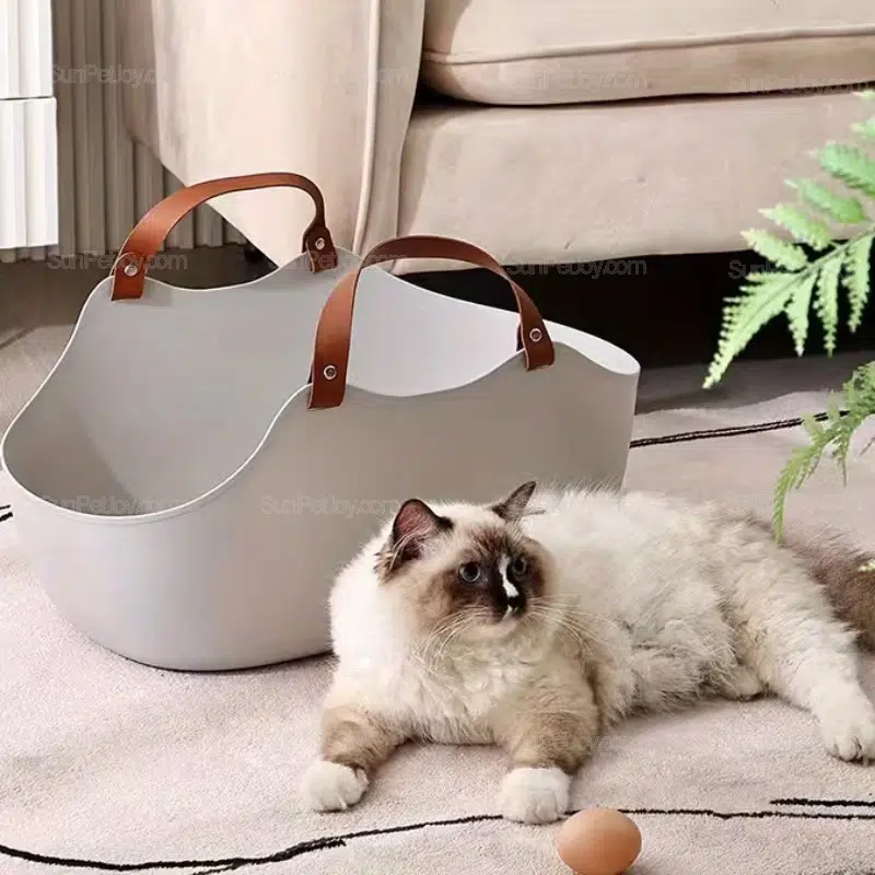 Discover our portable cat litter box, designed for effortless mobility in busy pet environments. Featuring sturdy leather handles and a semi-closed structure, this durable cat toilet minimizes litter scatter while providing cats with a private space. Ideal for wholesale cat supplies targeting American pet retailers, it’s built from wear-resistant materials for long-lasting use.