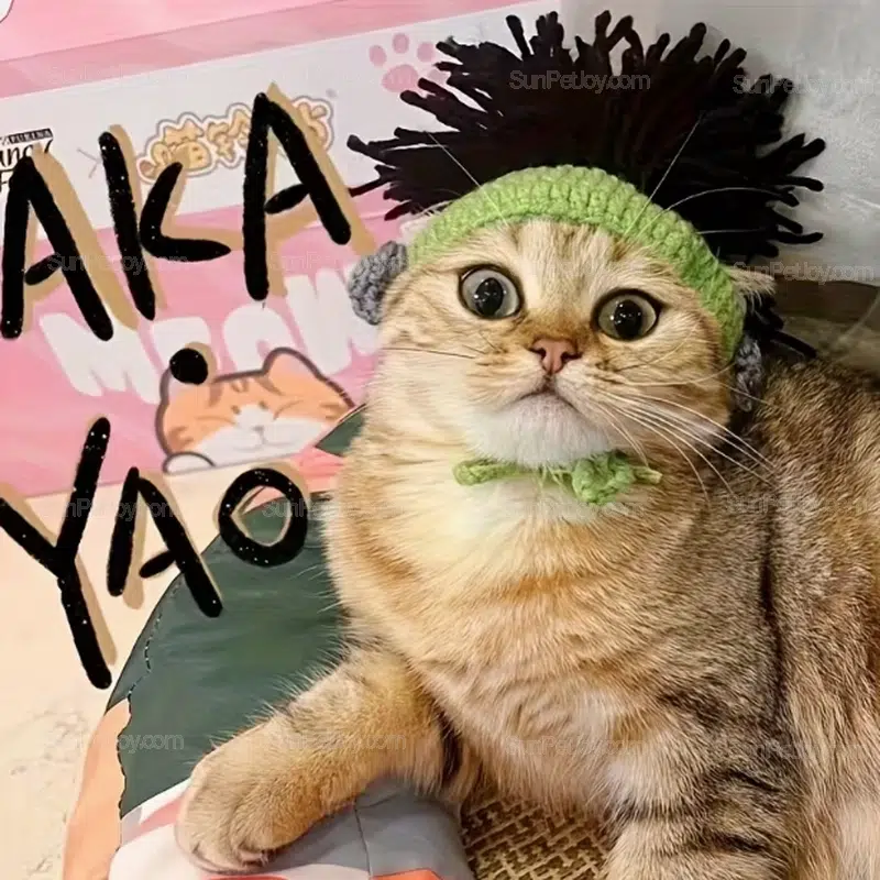 This punk-style knitted cat headband is designed for pet brands and distributors looking to add bold, unconventional costume accessories to their product lines. Featuring a hand-knit structure with spiked yarn detailing, this headwear delivers strong visual impact while remaining lightweight and comfortable for cats.