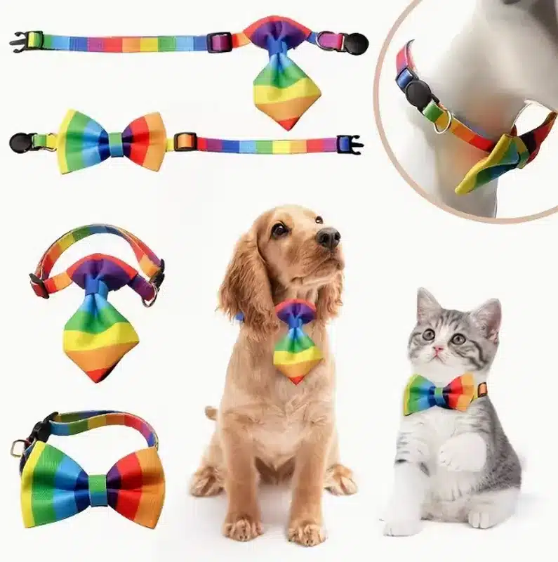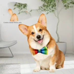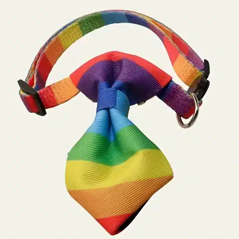 | Material | Durable nylon with vibrant rainbow plaid pattern – perfect for custom dog bow tie wholesale |