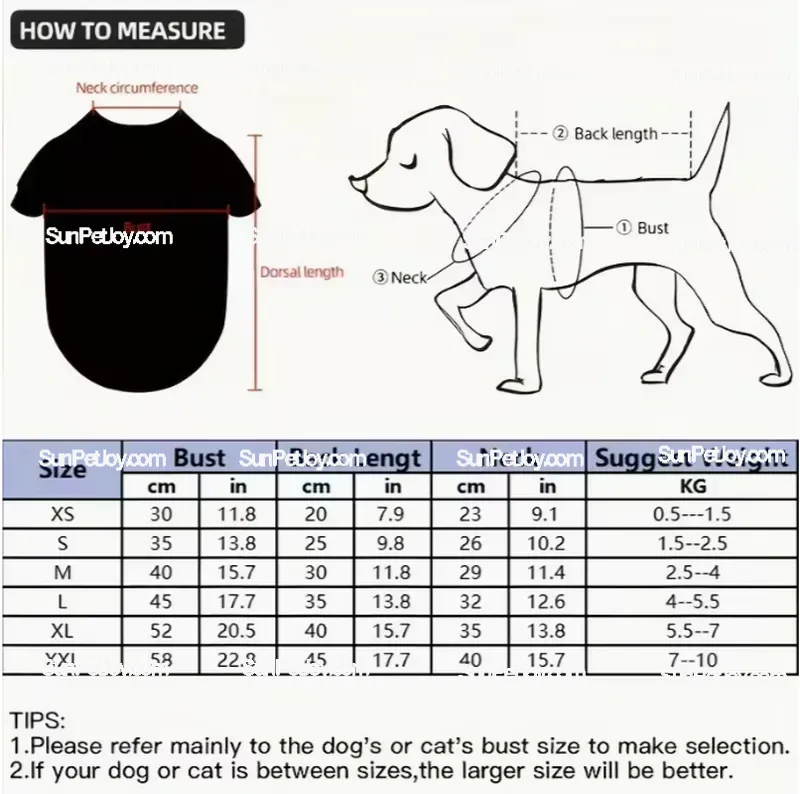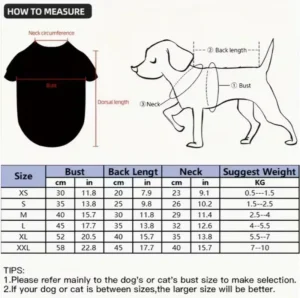 | Size | Bust (cm/in) | Back Length (cm/in) | Neck (cm/in) | Suggest Weight (KG) |