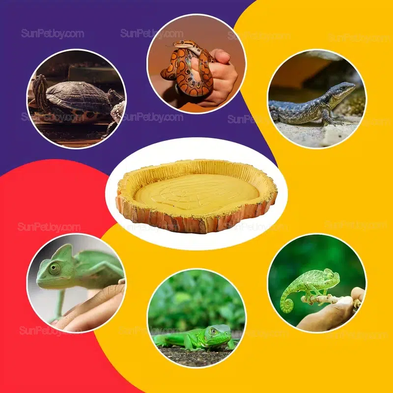 This reptile water dish is widely used for feeding and hydration in professional setups for turtles, geckos, lizards, frogs, and small snakes.