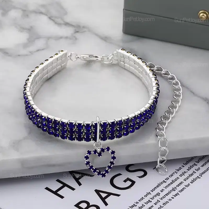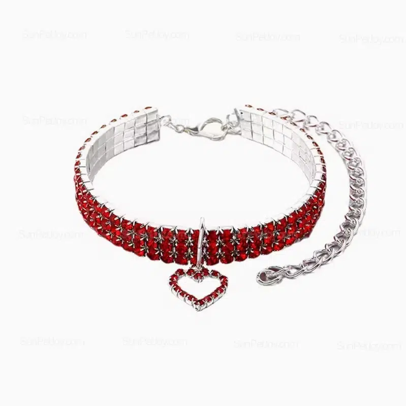 Elevate your pet boutique’s offerings with our sparkling rhinestone cat collar, featuring a three-row design that catches the light beautifully. Crafted from durable zinc alloy and plastic, this elastic necklace ensures a comfortable fit for cats of all sizes, complete with a charming heart-shaped pendant that adds a touch of whimsy.
