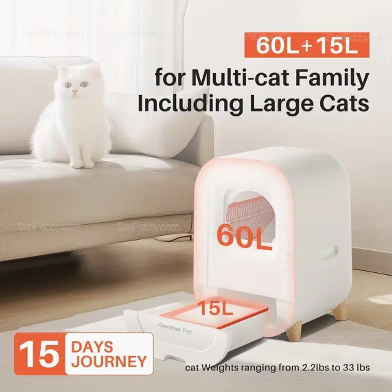 | Capacity | 60L Litter + 15L Waste Drawer |