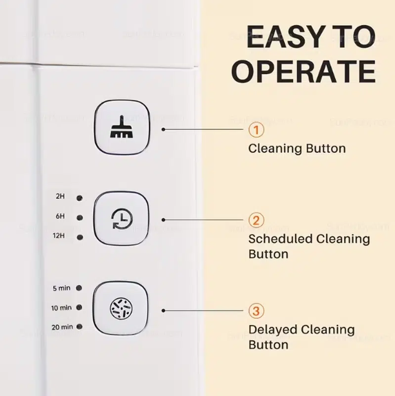 | Cleaning Modes | One-Touch, Scheduled (2H/6H/12H), Delayed (5/10/20min) |