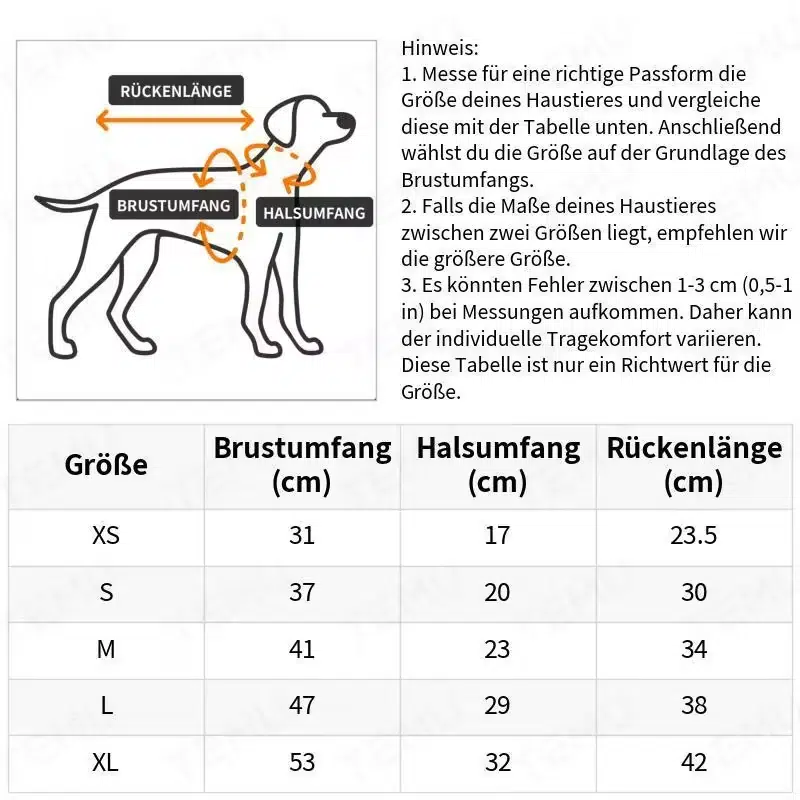 | Size | Chest (in) | Neck (in) | Back Length (in) | Suggested Weight |