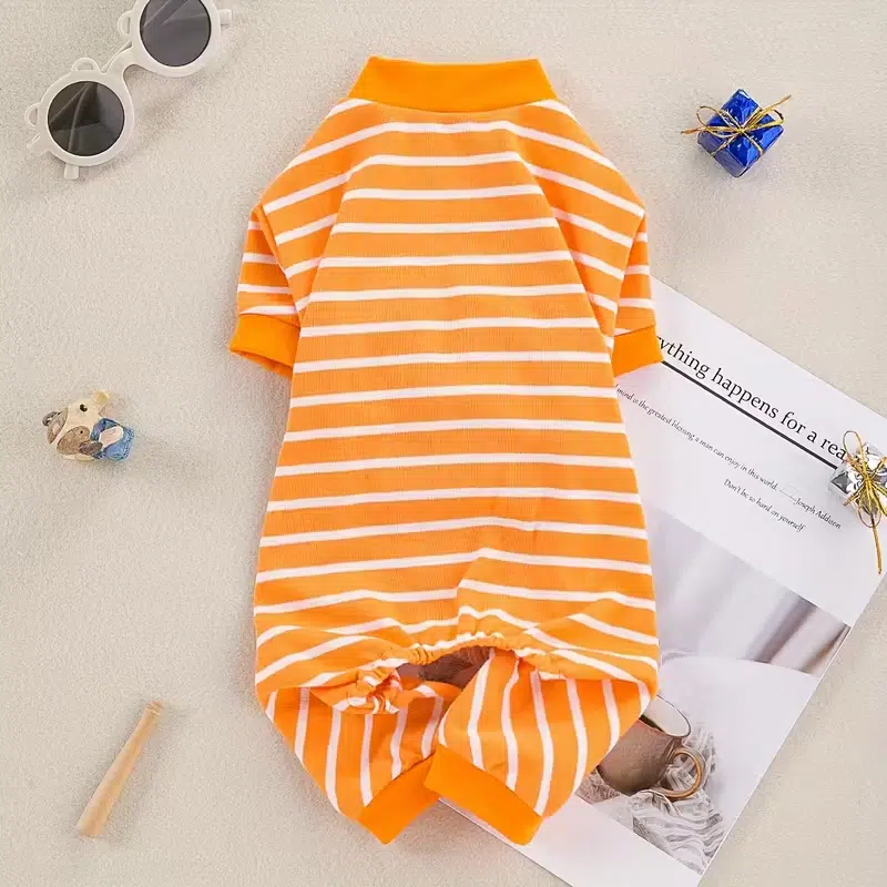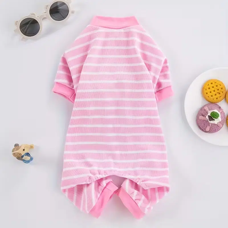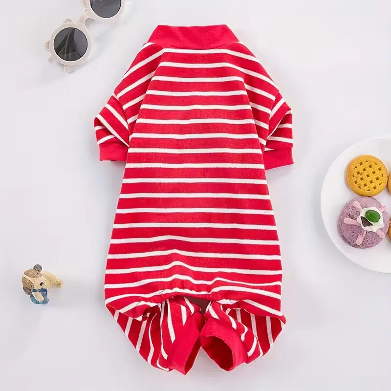 | Style | Breathable Striped 4-Leg Dog Pajamas / Romper |