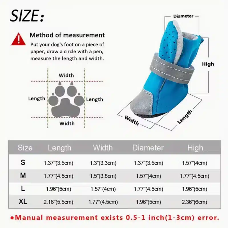 | Size | Paw Length | Paw Width | Boot Diameter | Boot Height |