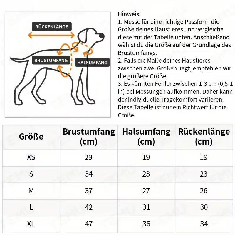 | Size | Chest Girth | Neck Girth | Back Length |