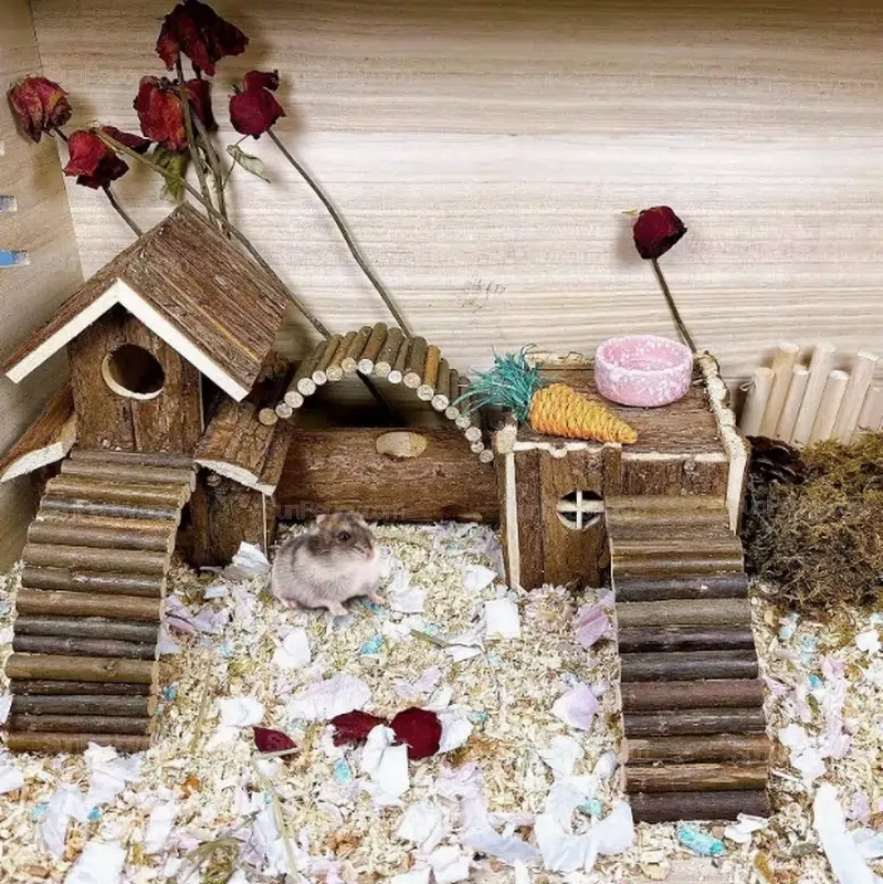Unlike single-function hamster houses, this modular wooden habitat supports natural nesting, movement, and enclosure zoning, making it ideal for dwarf hamsters, Syrian hamsters, mice, and gerbils. Its multi-level layout helps brands offer more engaging cage setups while maintaining durability and production consistency.