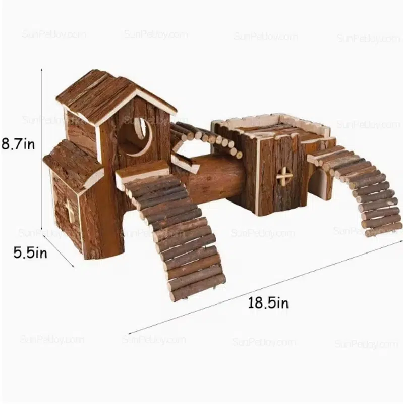 This wooden multi-chamber hamster habitat is designed for small animal brands, wholesalers, and OEM buyers seeking a functional, scalable cage interior solution. Built from natural solid wood, the structure combines hideouts, tunnels, ramps, and elevated platforms into one integrated habitat system suitable for commercial pet supply programs.