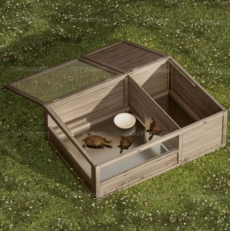 Wooden Tortoise Enclosure with Dual Access & Mesh Top | Wholesale