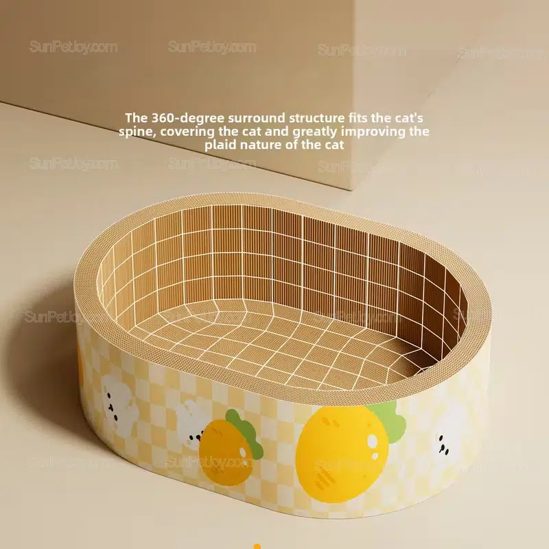 Designed for pet brands and retailers, this corrugated cat bed features a bamboo frame and supports OEM customization for private label, packaging, and bulk supply programs.