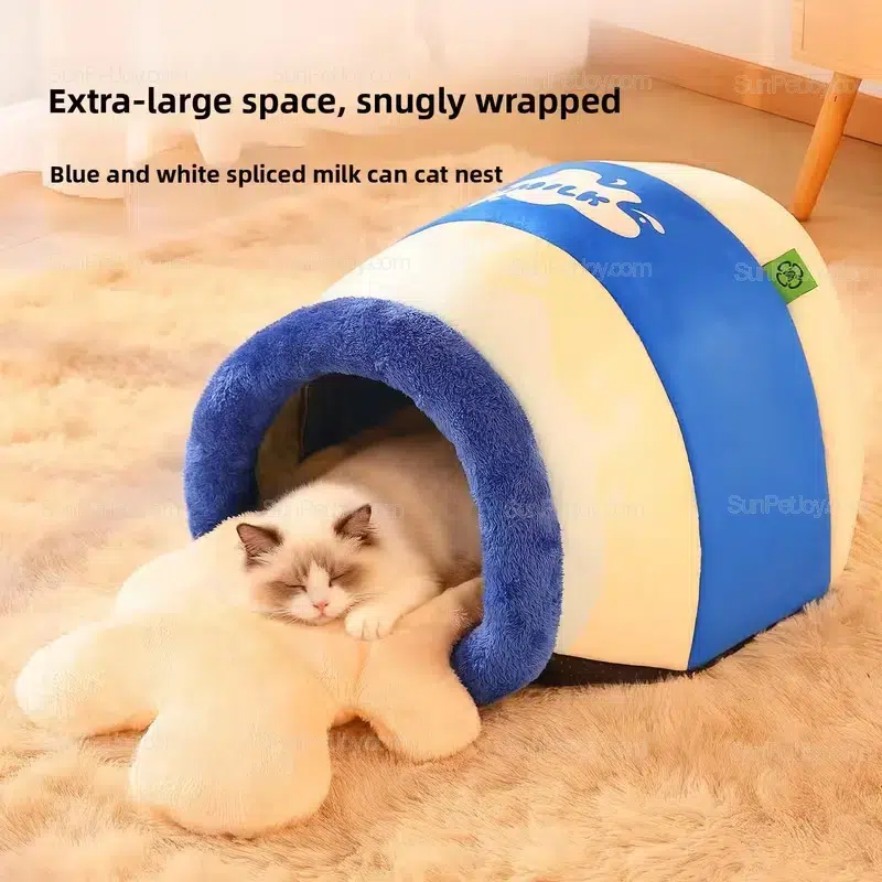 Designed for indoor cats, this OEM semi-enclosed cat sleeping bag offers thermal comfort and flexible sizing, ideal for factory customization and private label programs.