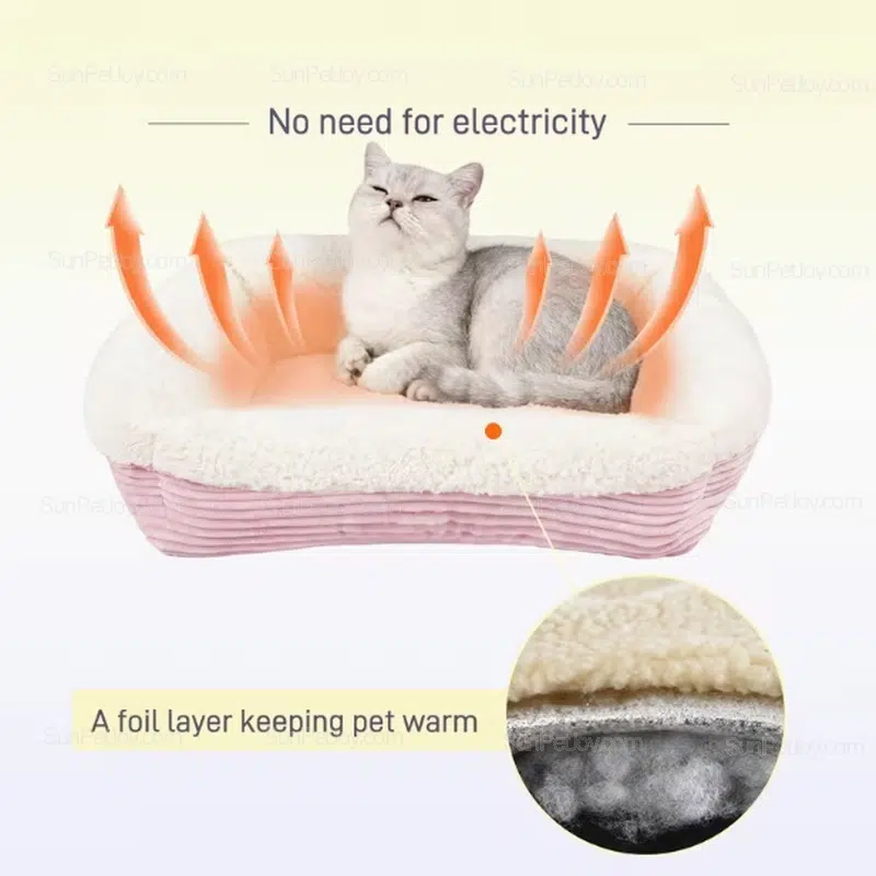 Passive self-warming cat bed pad designed for indoor use, crates, and shelves. Factory-made with custom sizes, colors, and private labeling for bulk buyers.