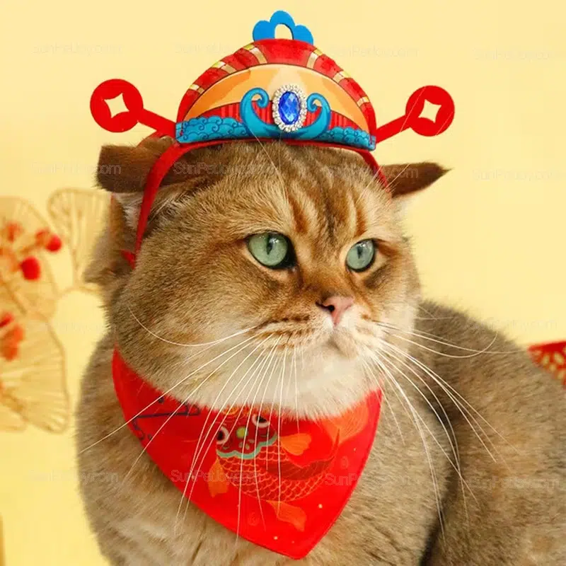 Elastic-fit cat New Year headwear designed for seasonal pet programs. OEM production supports custom colors, graphics, and bulk brand collections.
