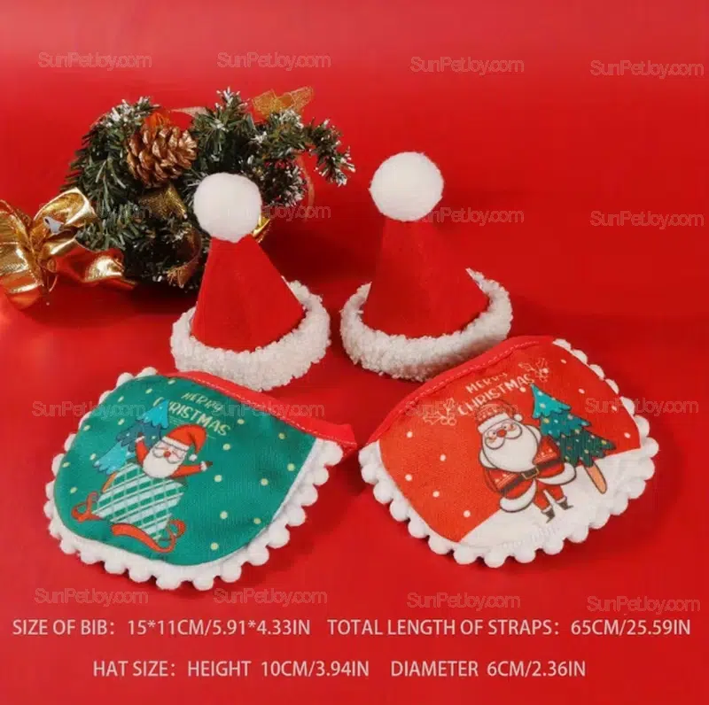 Factory-made cat Christmas hat & bib set for seasonal displays. Custom prints, colors and packaging supported for wholesale and private-label orders.
