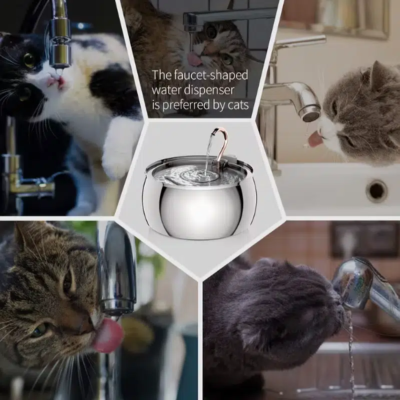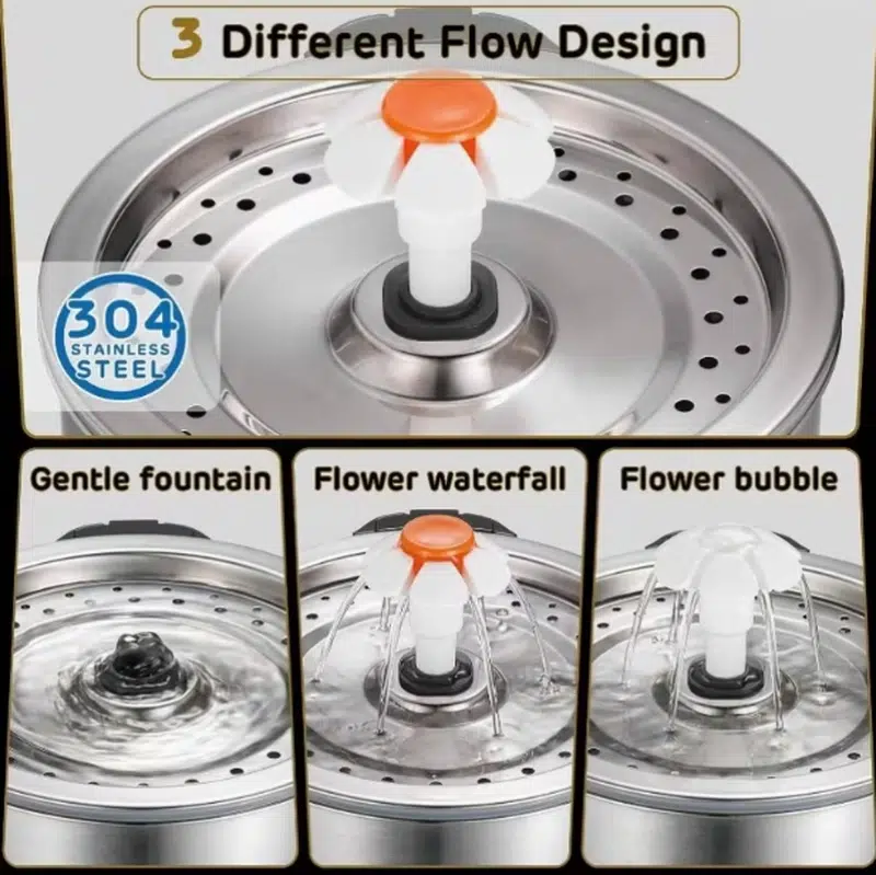 Designed for wholesale supply, this 2.5L stainless steel pet fountain features a 4-stage circulating filtration system, supporting stable performance, easy maintenance, and private label customization.