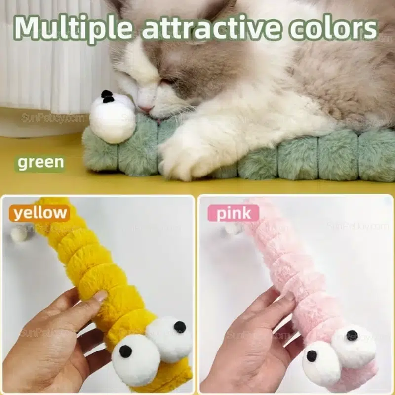 Soft segmented caterpillar plush designed for cat chewing and dental care. OEM production supports custom size, color, and branding for pet product lines.