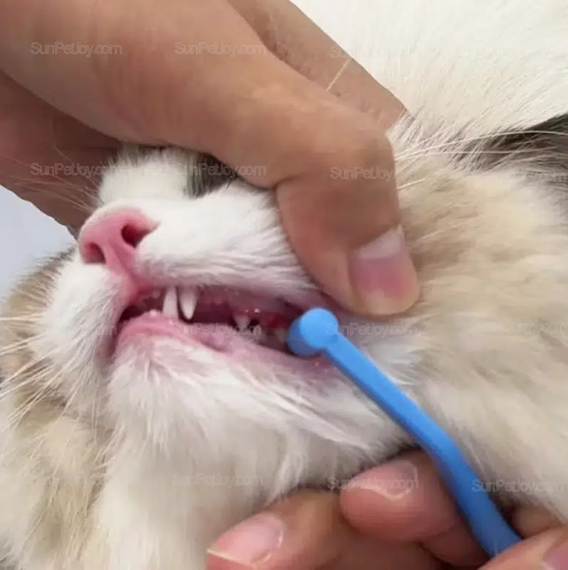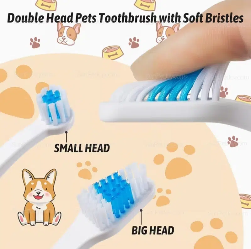 Designed for cat oral care brands, this double head toothbrush features soft bristles and dual sizes, supporting OEM customization for wholesale dental lines.