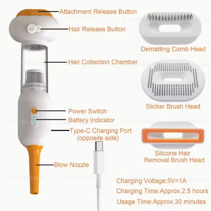 Designed for cat-focused brands, this grooming vacuum system supports OEM customization and stable bulk supply, combining hair removal, grooming and easy maintenance in one unit.