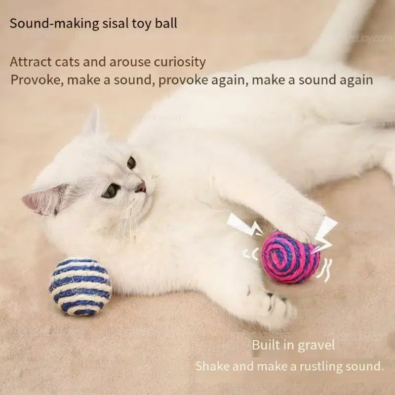 Durable cat rope ball toy with hanging loop, designed for chewing, quiet play, and daily enrichment. OEM customization available for wholesale buyers.