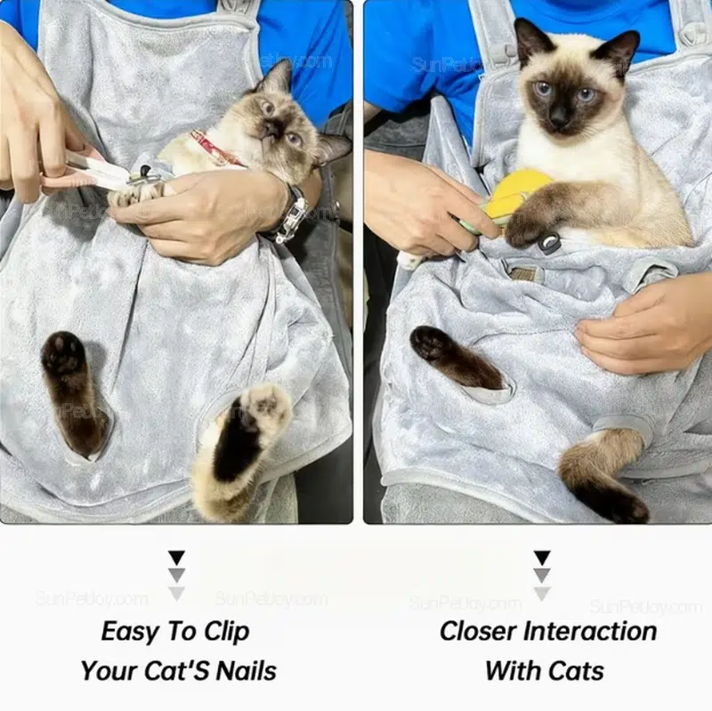 Soft plush cat apron carrier with paw vents for easy nail trims & close bonding. Ideal for OEM/wholesale partners seeking unique, customizable pet solutions.